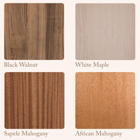 Our wood menu boards are made to order based on your custom request, and are crafted using 1/4" thick wood. We stock 8 genuine hardwood options, including Black Walnut, White Maple, and Mahogany, as well as more unique finishes such as Charcoal or Slate Grey. The final product size is determined by your menu page dimensions and requested logo placement.
